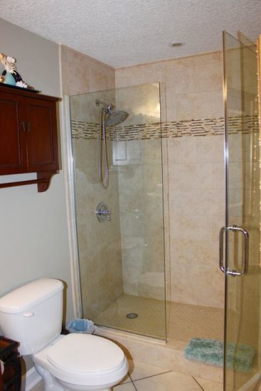 The master suite also has huge glass door/windows to your balcony. You can wake up in the morning in the plush pillowtop king size bed and visually enjoy the ocean and sky. Or simply pull back the custom made blackout drapes and drift back to sleep, lulled by the sound of rolling waves. On top of the large dresser is your personal 40' HDTV and DVD. Walk into the ensuite private master bath with granite countertop and pedestal wash basin and spa like walk in shower.