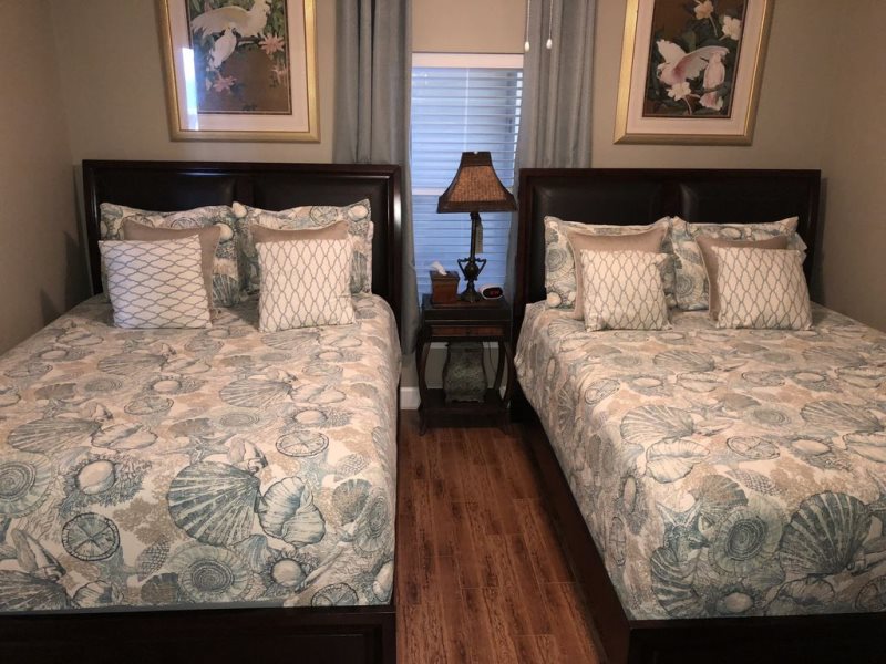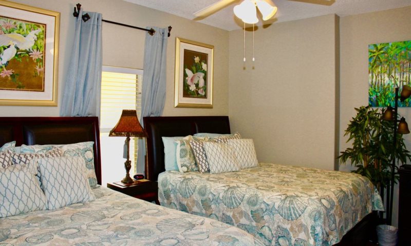 The second bedroom is equally luxurious with two pillowtop queen size beds, along with a 32' HDTV and DVD. Enter the bath through the private door and you will appreciate the same upscale details as the master bath. including a spa like walk in shower.